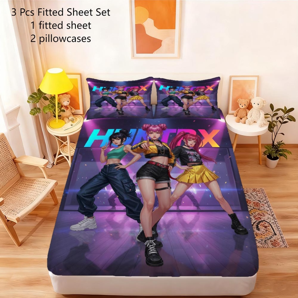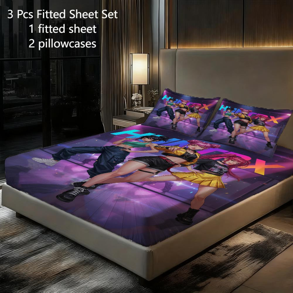 3-teiliges Kpop-Bettwäscheset, atmungsaktiv und bequem im Lakenstil, beinhaltet 1 Bettbezug und 2 Kissenbezüge, ein kernloser Matratzenschoner, ein stilvolles und langlebiges Essential zum Schutz der Matratze