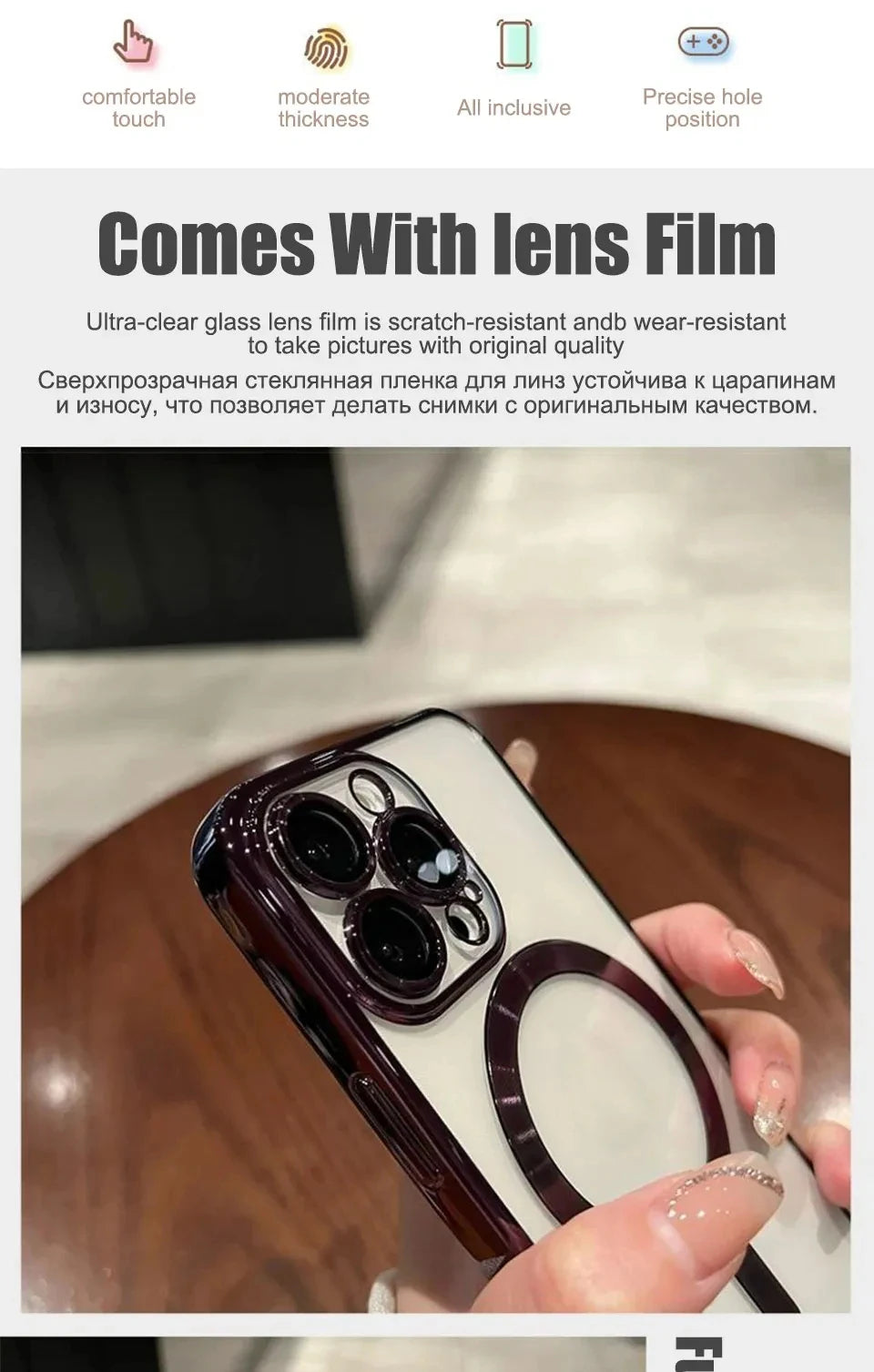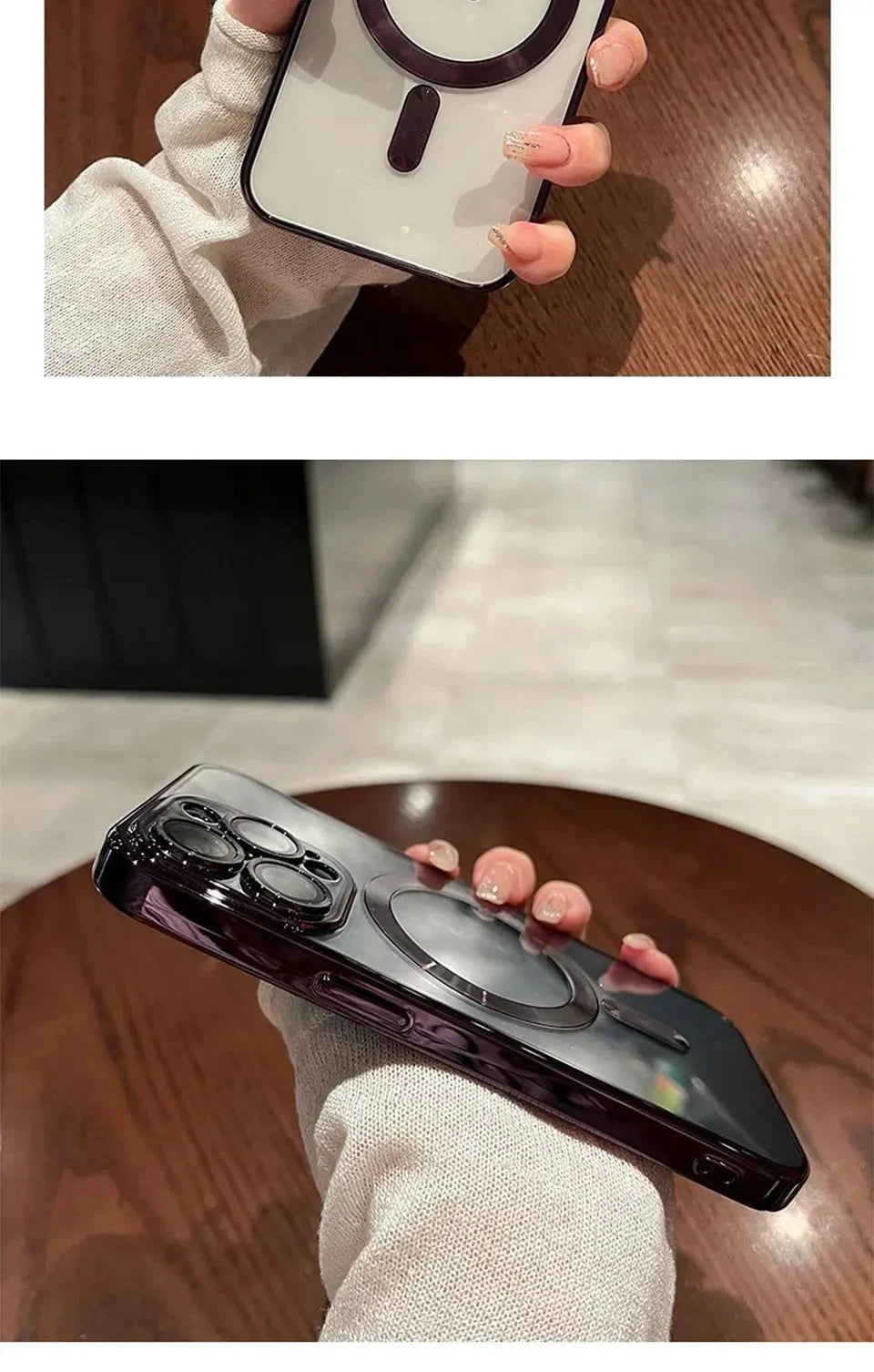 Verchromtes weiches TPU-Case mit vollständigem Linsenschutz für iPhone 13 14 12 11 15 Pro Max Plus Magsafe magnetische Handyhülle kabelloses Ladecover