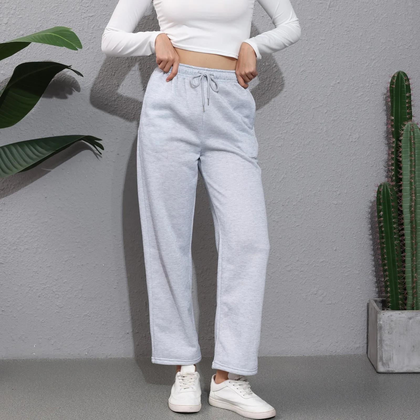 Damen Winter-Sweatpants Uni-Farbe Freizeit-Hosen Damen Fleece-Sweatpants Weite Gerade Hosen